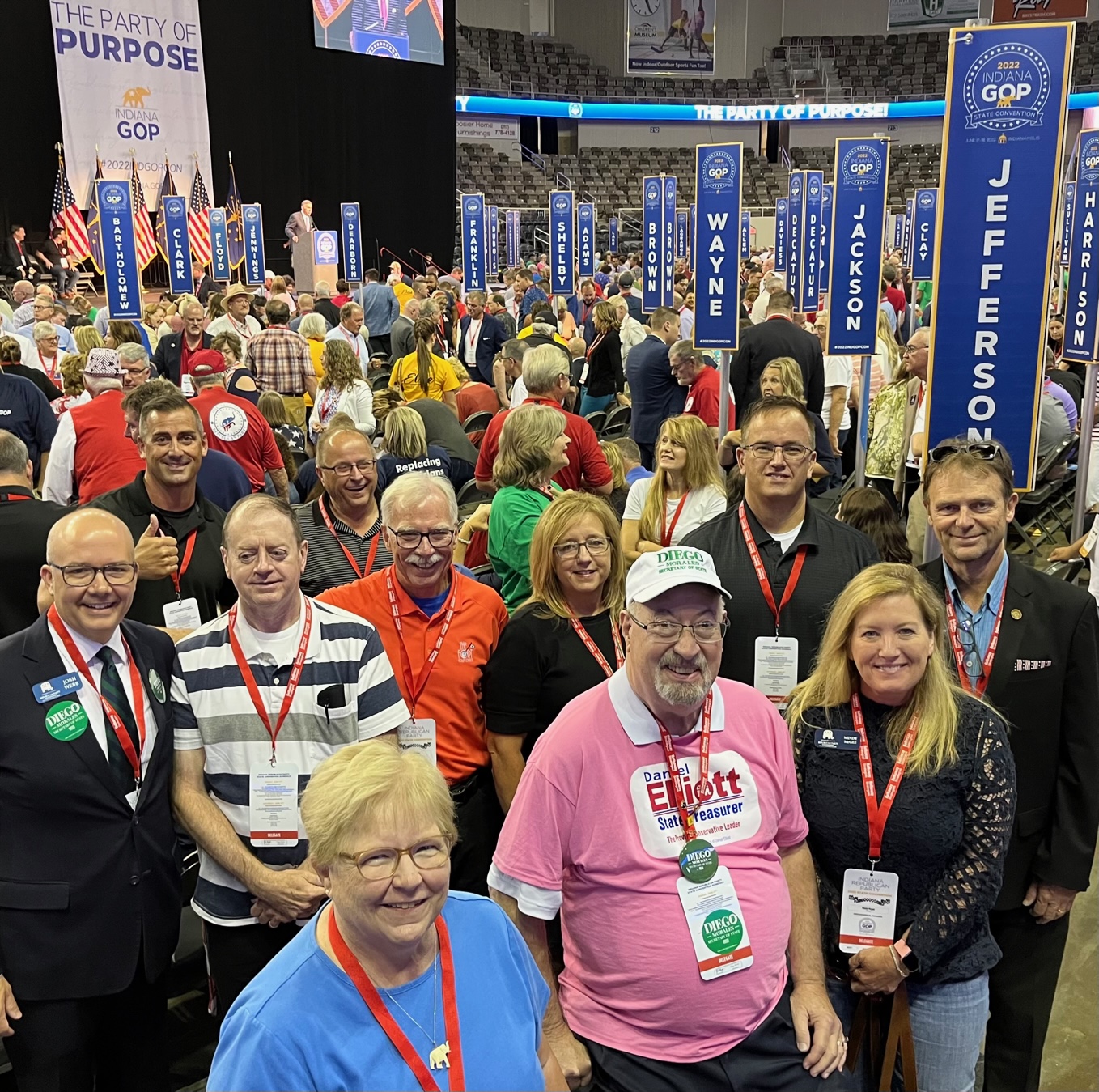 Pam with Senator Mike Braun, Mayor Bob Courtney, and Rep Zach Payne.